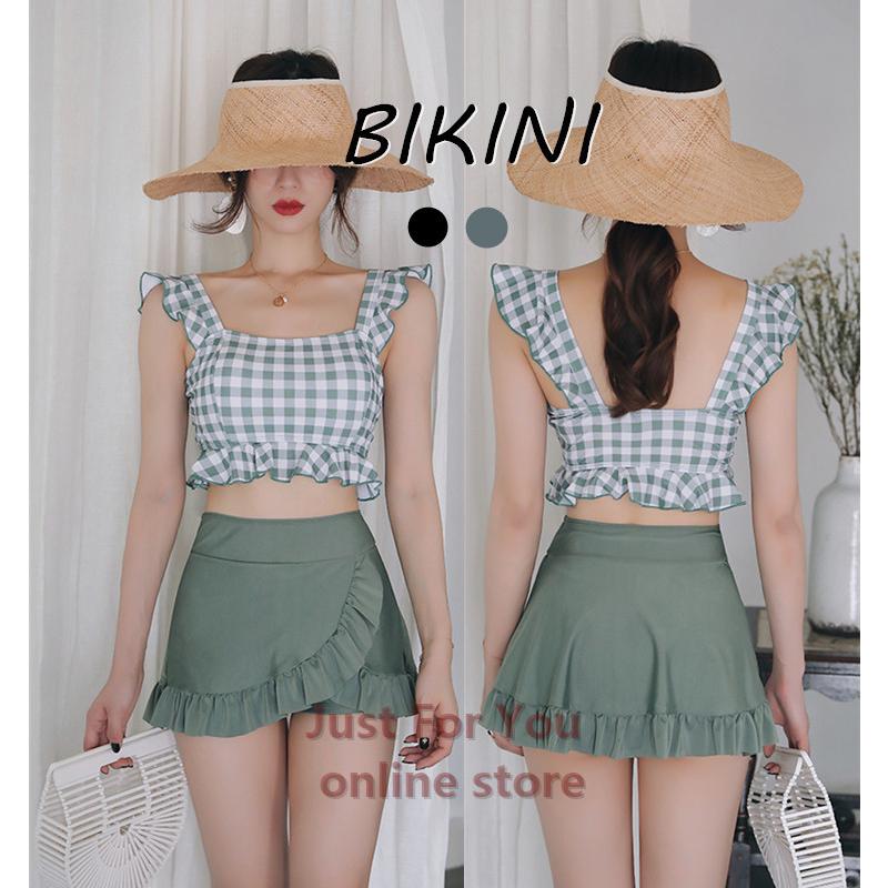 レディース 水着 ビキニ レディース ビスチェ水着 韓国 体型カバー 盛れる フリル スカート ハイウエスト 着痩せ 小胸 水着 セットアップ 黒 緑 Zaka 943 Just For You Online Store 通販 Yahoo ショッピング